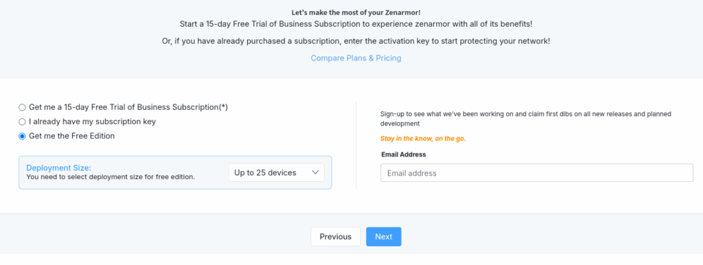 Quando si seleziona la versione gratuita, bisogna anche specificare il numero massimo di dispositivi connessi alla propria rete; questo numero non può essere superiore a 100.