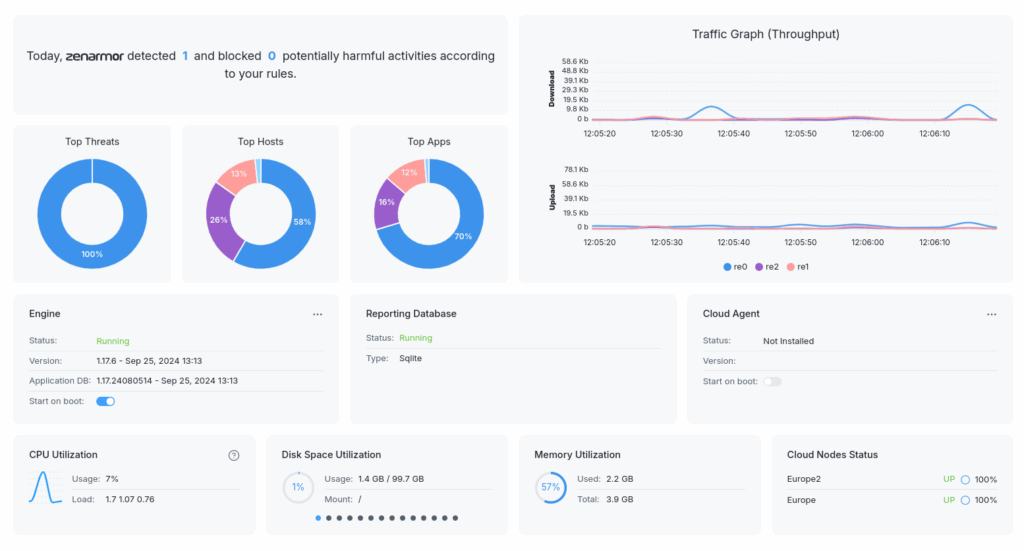Al termine dell’installazione, la dashboard di Zenarmor dovrebbe apparire più o meno così: